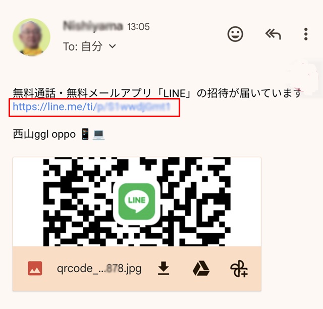 | 1.メールを受信すると、(QRコードと一緒に)URLが表示されるのでそれをタップします。 | ![]() |